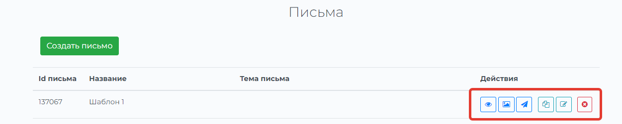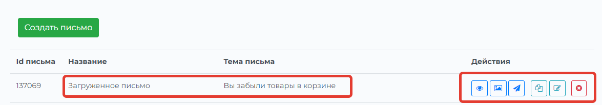 Созданное письмо появится первым в общем списке писем на странице «Письма».