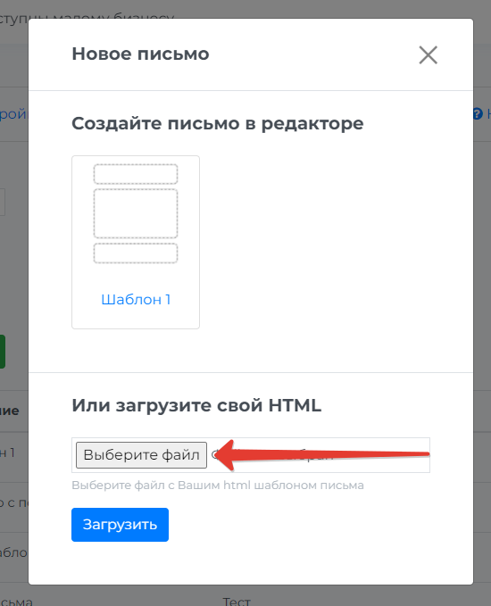 В появившемся окне выберите «Или загрузите свой HTML», затем выберите файл на компьютере и нажмите «Загрузить».